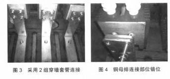 (1)穿墻套管上部與斷路器開關(guān)靜支架聯(lián)接選用軟聯(lián)接方法,一方面能夠去除銅母排硬聯(lián)接產(chǎn)生的應(yīng)力,其他還可吸收斷路器操作時的分合閘彈跳效果力。
