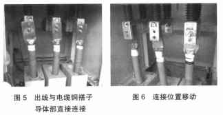 穿墻套管下部為出線,與電纜銅搭子導(dǎo)體部直接聯(lián)接,如圖5所示。吊銷聯(lián)接螺栓后產(chǎn)生聯(lián)接方位移動,如圖6所示。此現(xiàn)象闡明電纜銅搭子與穿墻套管存在很大的聯(lián)接變形,并產(chǎn)生應(yīng)力,在電纜通電后產(chǎn)生的電動力和聯(lián)接應(yīng)力進(jìn)一步效果于穿墻套管,使得穿墻套管產(chǎn)生碎裂。