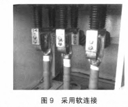 (2)穿墻套管下部與電纜銅搭子導(dǎo)體部分聯(lián)接選用軟聯(lián)接過渡,如圖9所示,能夠去除硬聯(lián)接產(chǎn)生的應(yīng)力,一同消除電纜通電后產(chǎn)生的電動力,隔絕了對穿墻套管的應(yīng)力效果。