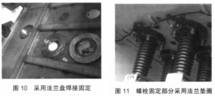 (3)穿墻套管與開關(guān)柜底板密封固定部位選用法蘭盤焊接固定設(shè)備,如圖10所示,保證穿墻套管與開關(guān)柜底板觸摸部分平整無變形。一同螺栓固定部分選用法蘭墊圈,如圖11所示,保證了螺栓緊固力均勻效果于穿墻套管,然后消除了穿墻套管密封固守時的不均勻固定應(yīng)力。