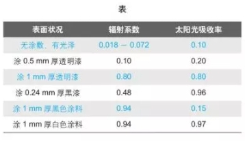 亮時,輻射系數較低,常需涂敷或陽極處理以添加描射系數。